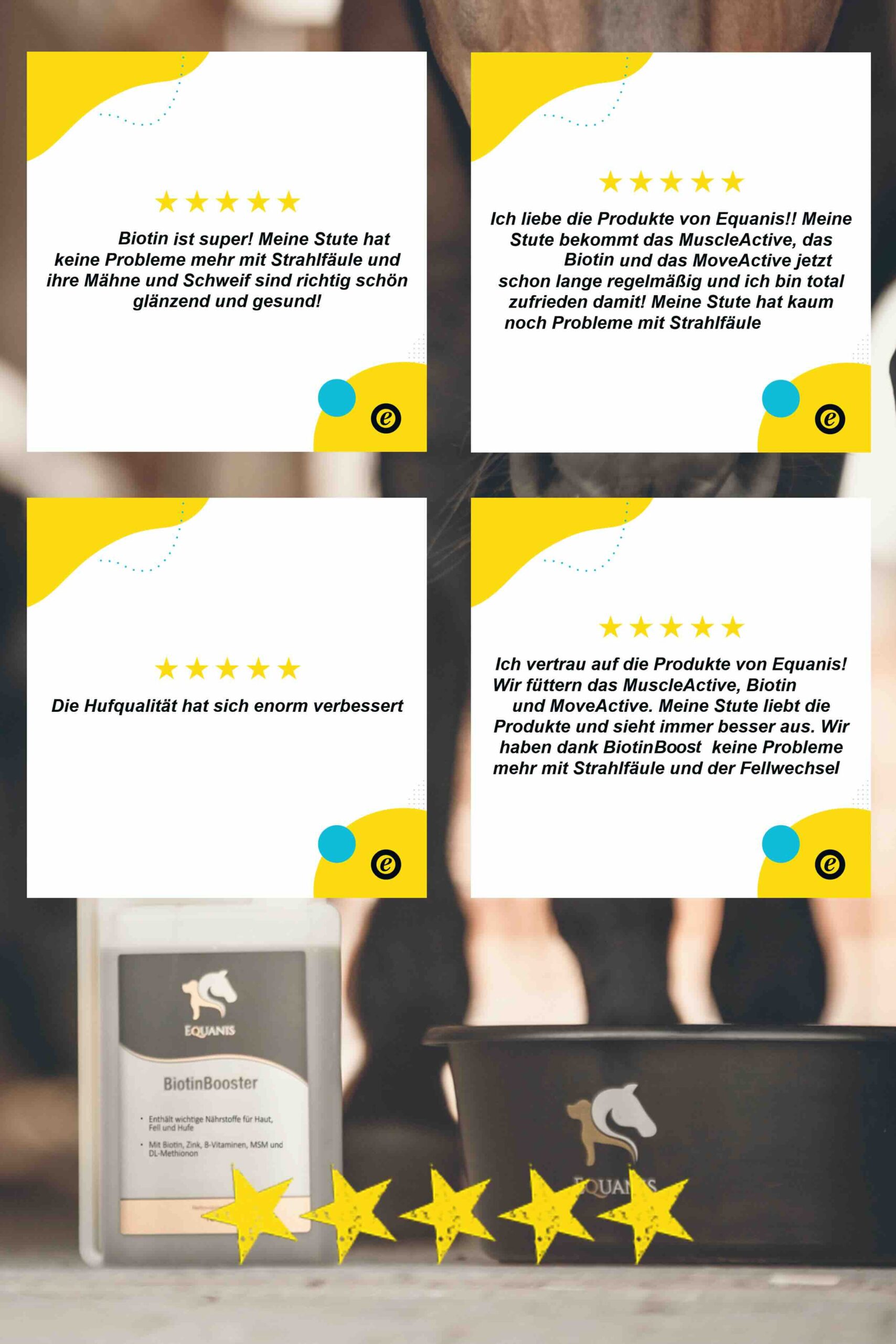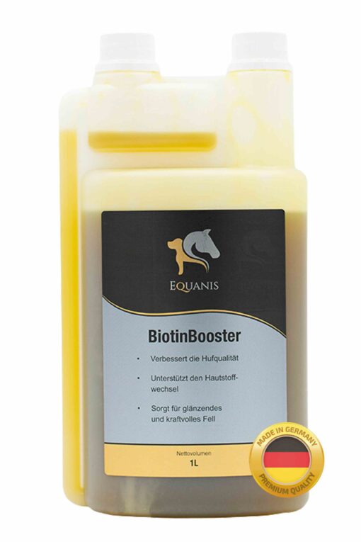Der BiotinBooster kombiniert hochdosiertes Biotin mit Zink und weiteren wertvollen Nährstoffen, die traditionell für ihre unterstützenden Eigenschaften auf Haut, Fell und Hufe geschätzt werden. Dank seiner ausgewogenen Rezeptur unterstützt der BiotinBooster das natürliche Aussehen und Gesundheit von Haut und Fell.