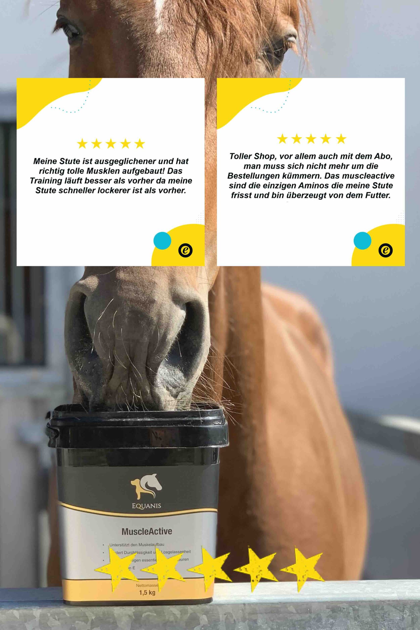 Seit Sommer 2023 ist es endlich soweit und ich konnte meinen 3-jährigen nach langer Verletzungspause endlich Anreiten. Es war ein langer Weg dorthin, der seine Spuren hinterlassen hat. Er hatte schlimme Magenprobleme und ist obendrein auch noch schwerfuttrig und dadurch extrem dünn gewesen. Natürlich wollte ich ihn mit dem beginnenden Training unterm Sattel bestmöglich beim Gewichts- und Muskelaufbau unterstützen. Es gibt unendlich viele Produkte auf dem Markt, die vielversprechend klingen. Und so habe ich mich auf die Suche nach dem passenden Zusatzfutter gemacht. Magenschonend ohne unnötige Füllstoffe sollte es sein und möglichst wenig Zucker enthalten. Und damit kam ein großer Teil der anvisierten Mittelchen plötzlich auch schon nicht mehr infrage. Also testete ich mich durch das noch verbleibende Angebot. Mit enttäuschenden Ergebnis. Keines der Zusatzpräparate hielt das, was es versprach. Mein Jungpferd legte trotz Training und ausreichend Futter kaum zu, ein sichtbarer Effekt war auch nach wochenlanger Fütterung nicht zu erkennen. Irgendwann bin ich in meiner Recherche dann auf die Futtermittel von Equanis gestoßen. Equanis stellt hochwertiges und trotzdem bezahlbares Zusatzfutter für Pferde her, wobei komplett auf Zucker verzichtet wird. Klingt nach genau dem, was wir suchen. Aber viel versprochen haben die anderen Hersteller ja auch…ich habe dann im September trotzdem entschieden, das MuscleActive zu testen. Und ich bin das erste Mal nicht enttäuscht worden. Im Gegenteil. Mit so einer schnellen und sichtbaren Veränderung hatte ich nicht gerechnet. Schon nach drei Wochen bemerkte ich die ersten deutlichen Veränderungen an meinem Pferd. Er legte langsam an Gewicht und vor allem aber auch an Masse zu. Nach 2 Monaten Fütterung ist er schon jetzt nicht wiederzuerkennen. Die Rippen sind fast gänzlich verschwunden, am Hals, Hinterhand und Brust hat er deutlich an Muskulatur zugelegt. Nie im Leben hätte ich nach all den Enttäuschungen mit so einem Ergebnis in so kurzer Zeit gerechnet! Das MuscleActive von Equanis war für uns ein absoluter Gamechanger und wird auch künftig ein fester Bestandteil in der Fütterung bleiben.